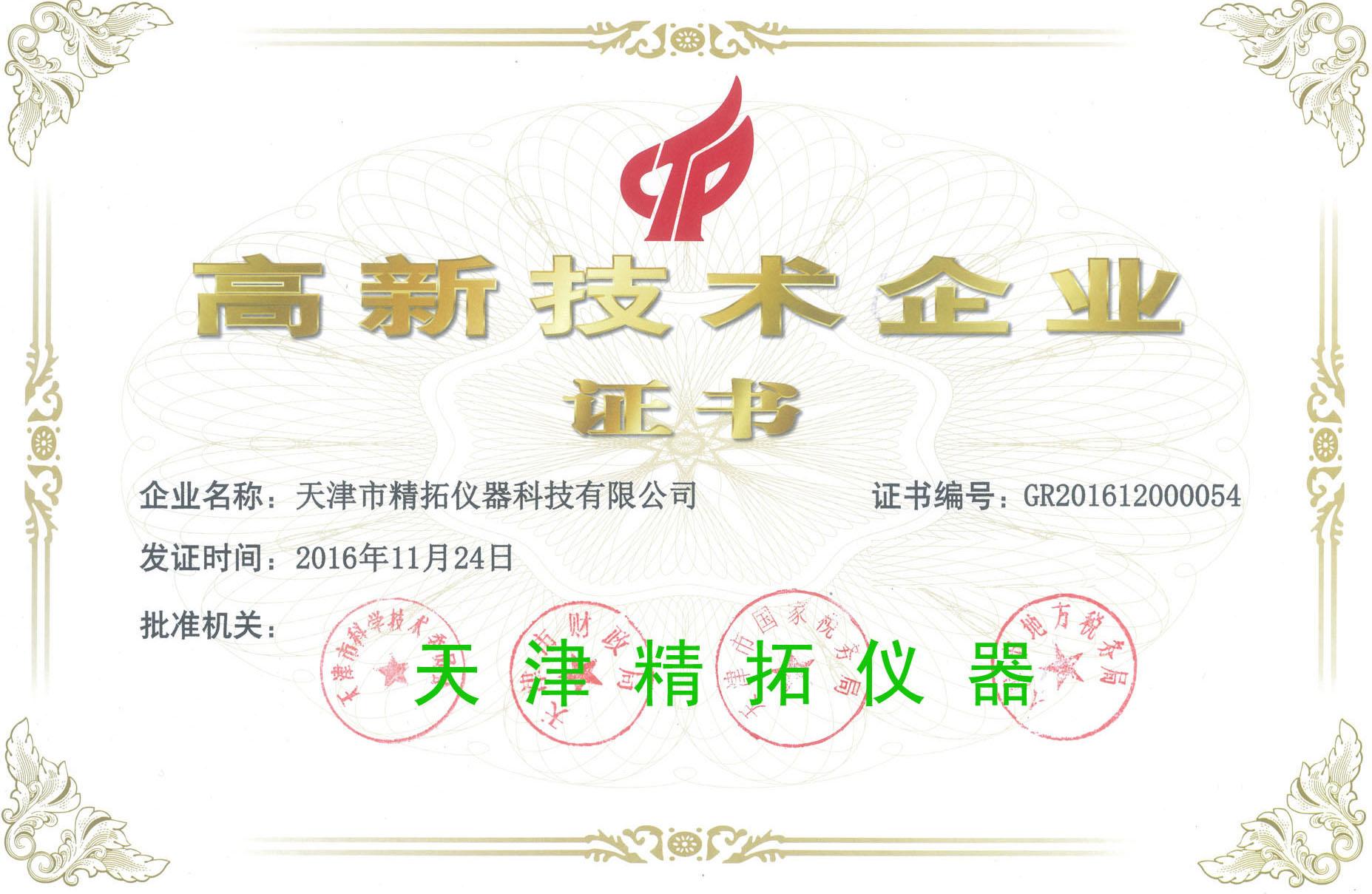 天津精拓儀器獲得國家高新企業證書!!!