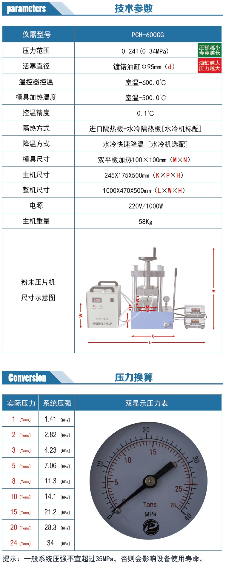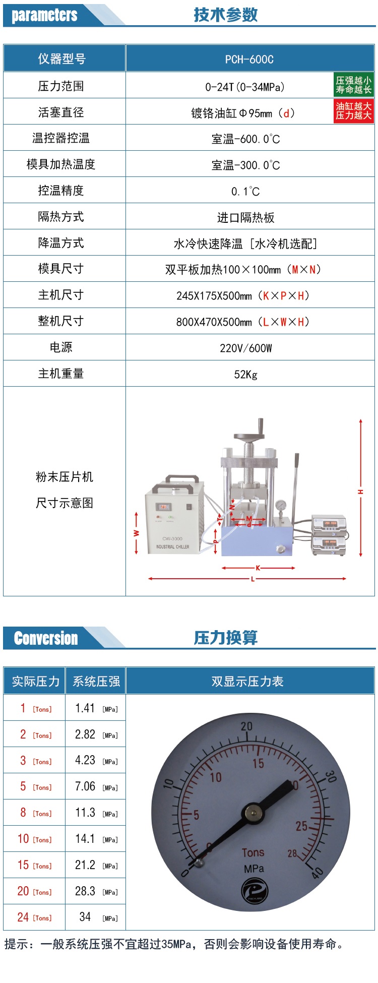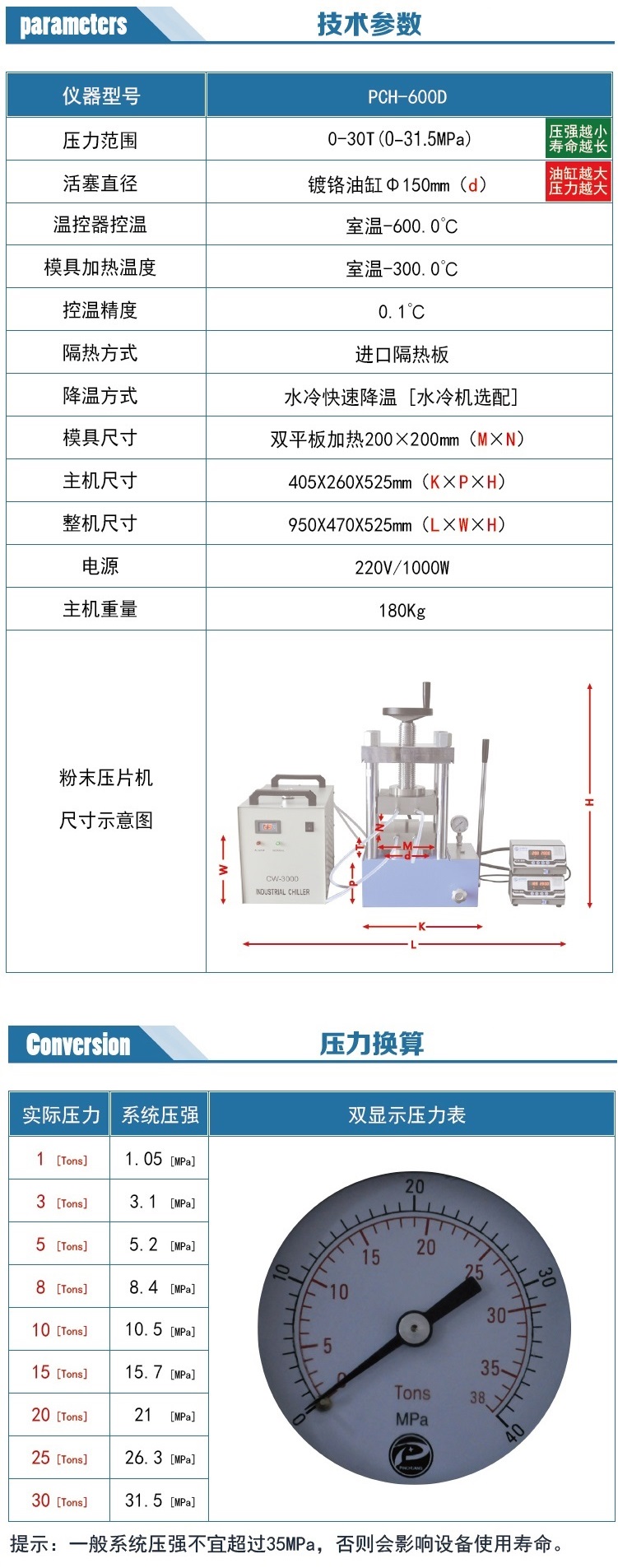 根據(jù)平板面積 規(guī)格PCH-600D 可選 30T 200MM寬;60T 180MM寬
